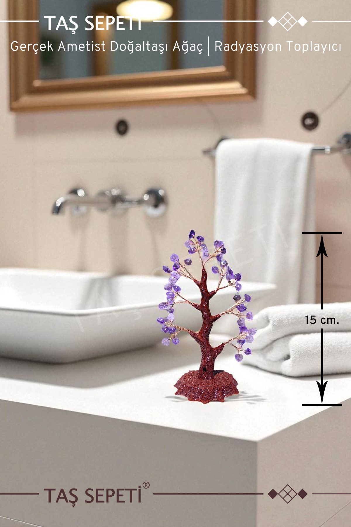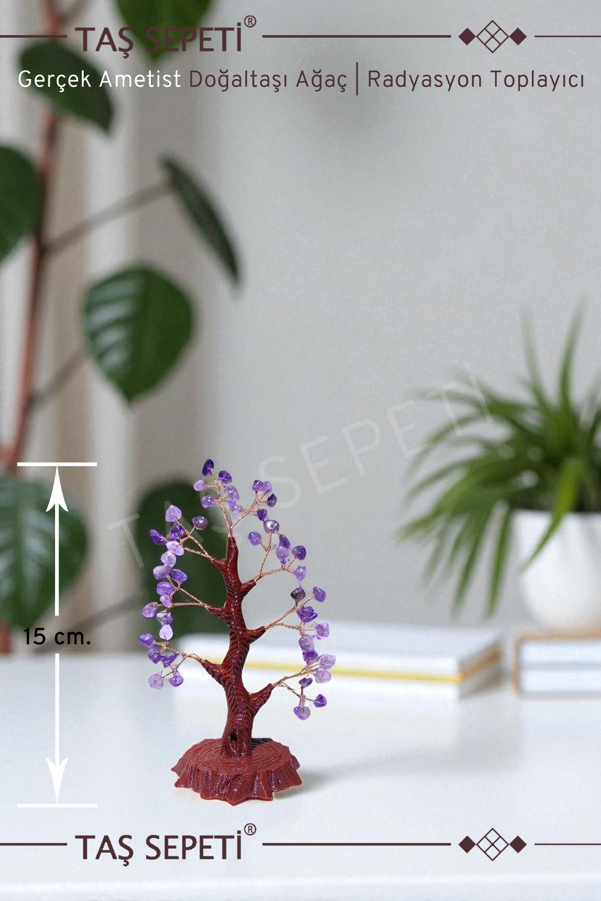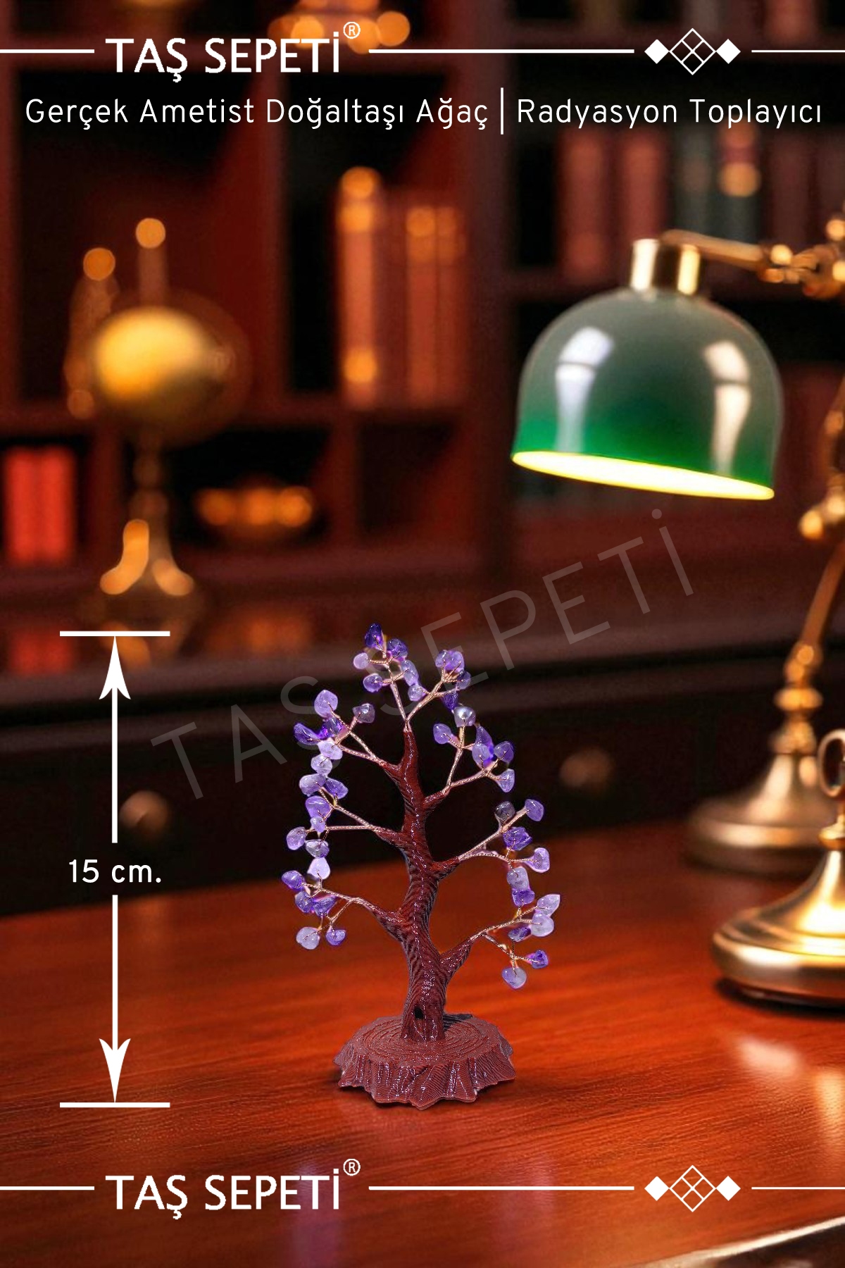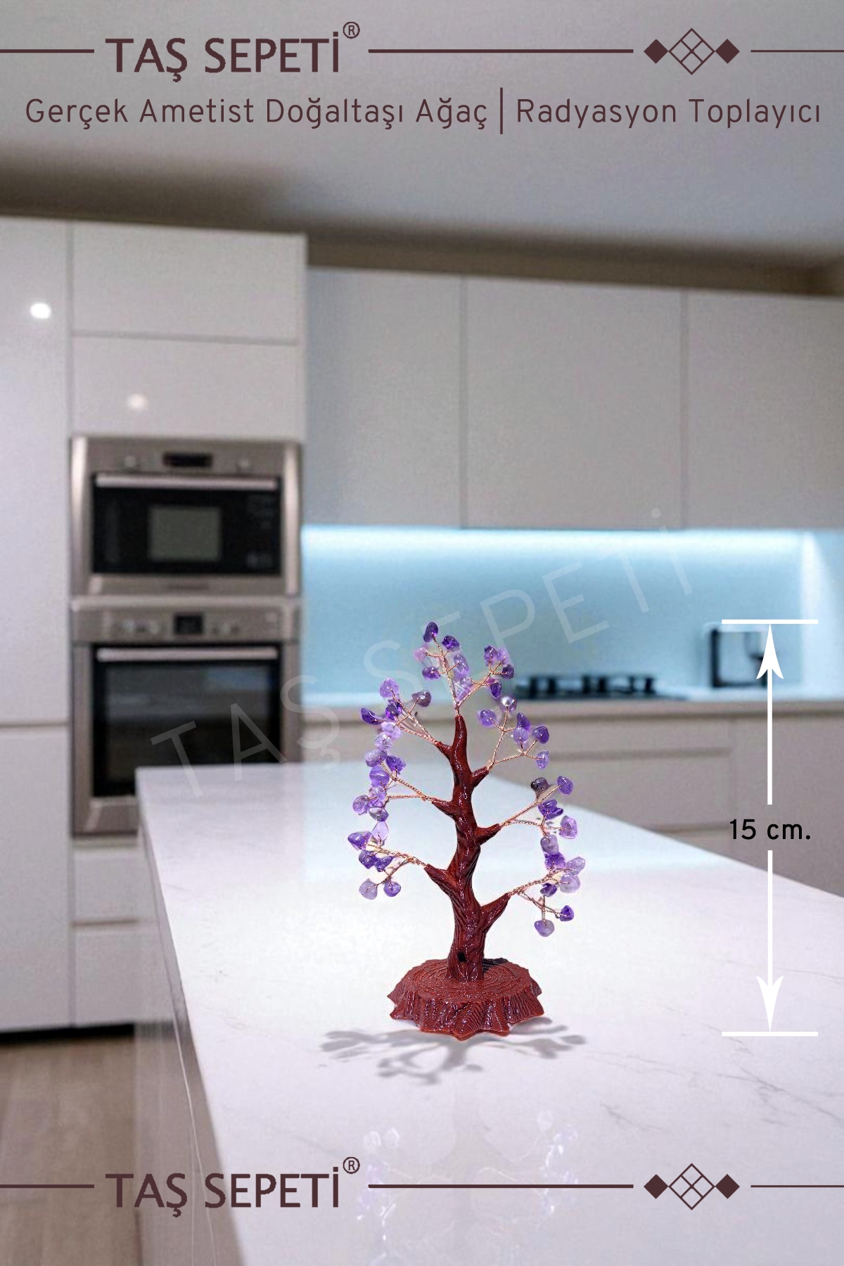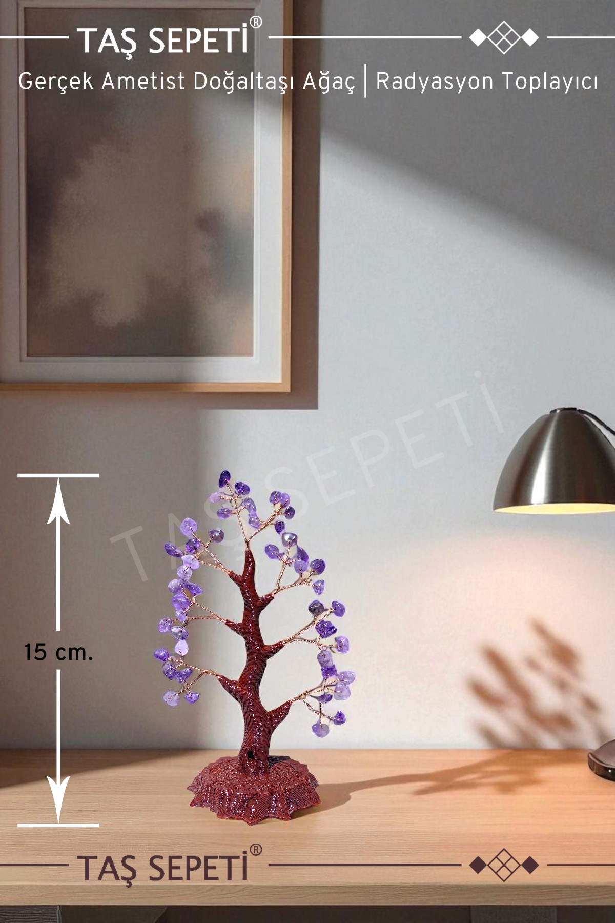 Gerçek Ametist Doğal Taşı Ağaç Radyasyon Toplayıcı Feng Shui Huzur Ağacı 15 Cm